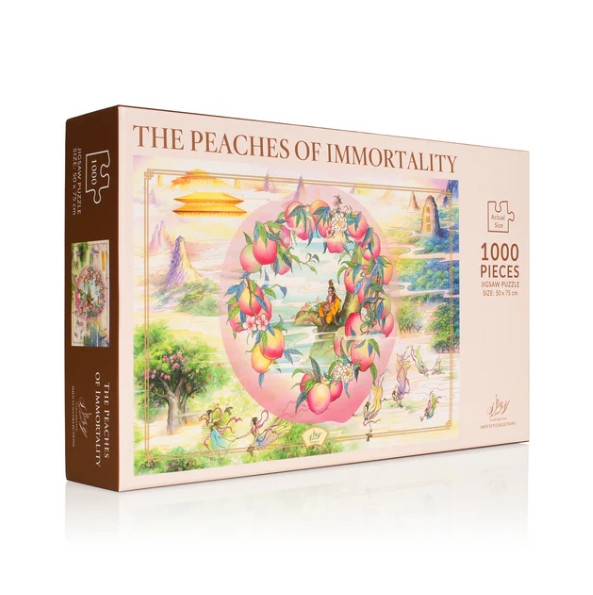 Trải nghiệm nét mê hoặc của các truyền thuyết Trung Hoa với bộ ghép hình 1000 mảnh lấy cảm hứng từ "Tây Du Ký" và các tiết mục của Shen Yun. Bức tranh mô tả Vườn Đào Tiên bất tử, nơi những quả đào có sức mạnh kỳ diệu, chín sau mỗi 3.000 hoặc 9.000 năm. Hãy tham gia vào bữa tiệc tinh nghịch của Hầu Vương đại náo thiên cung.