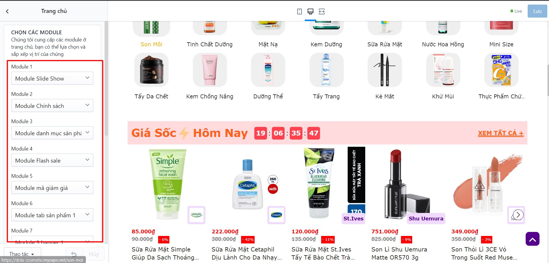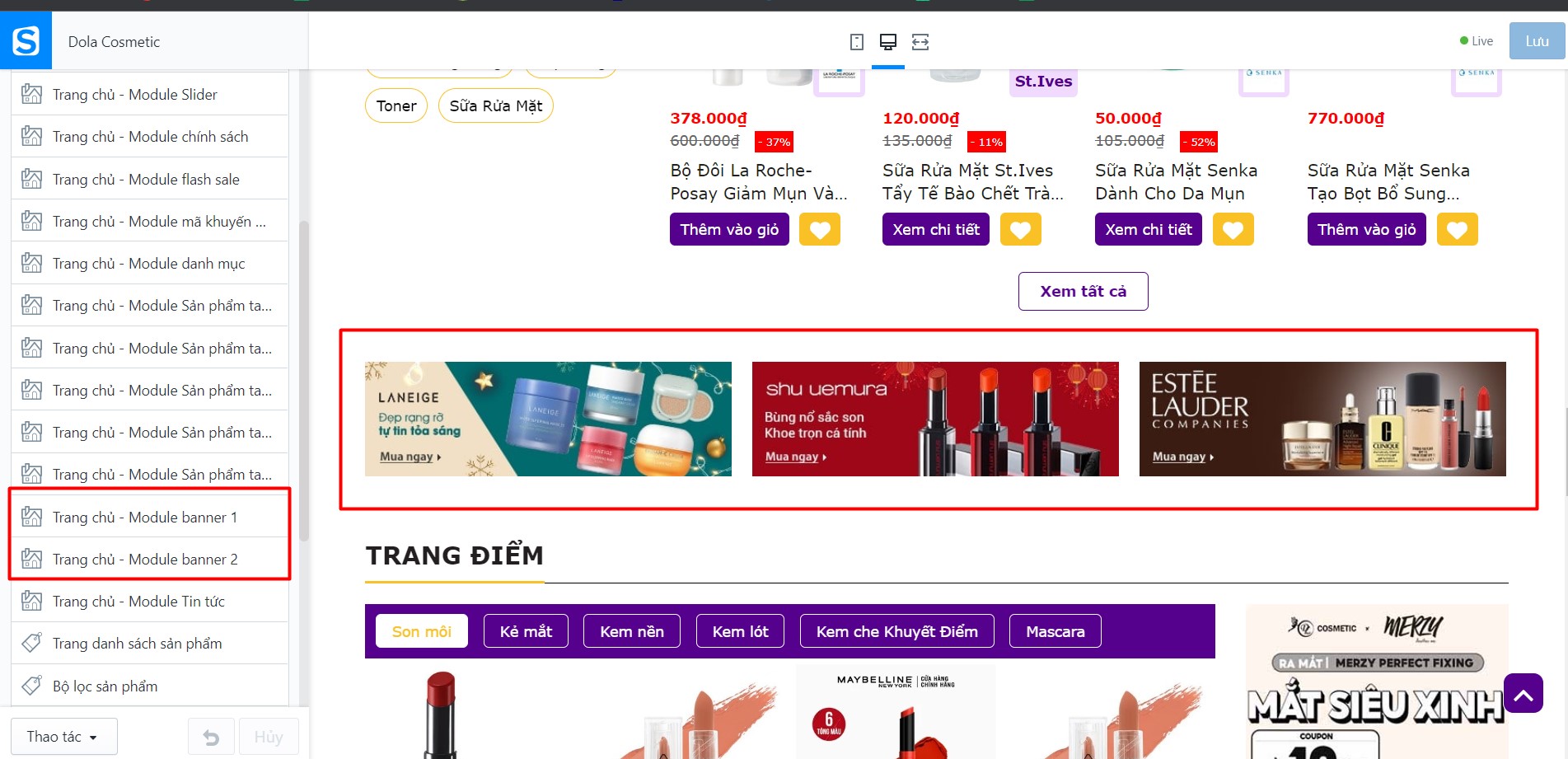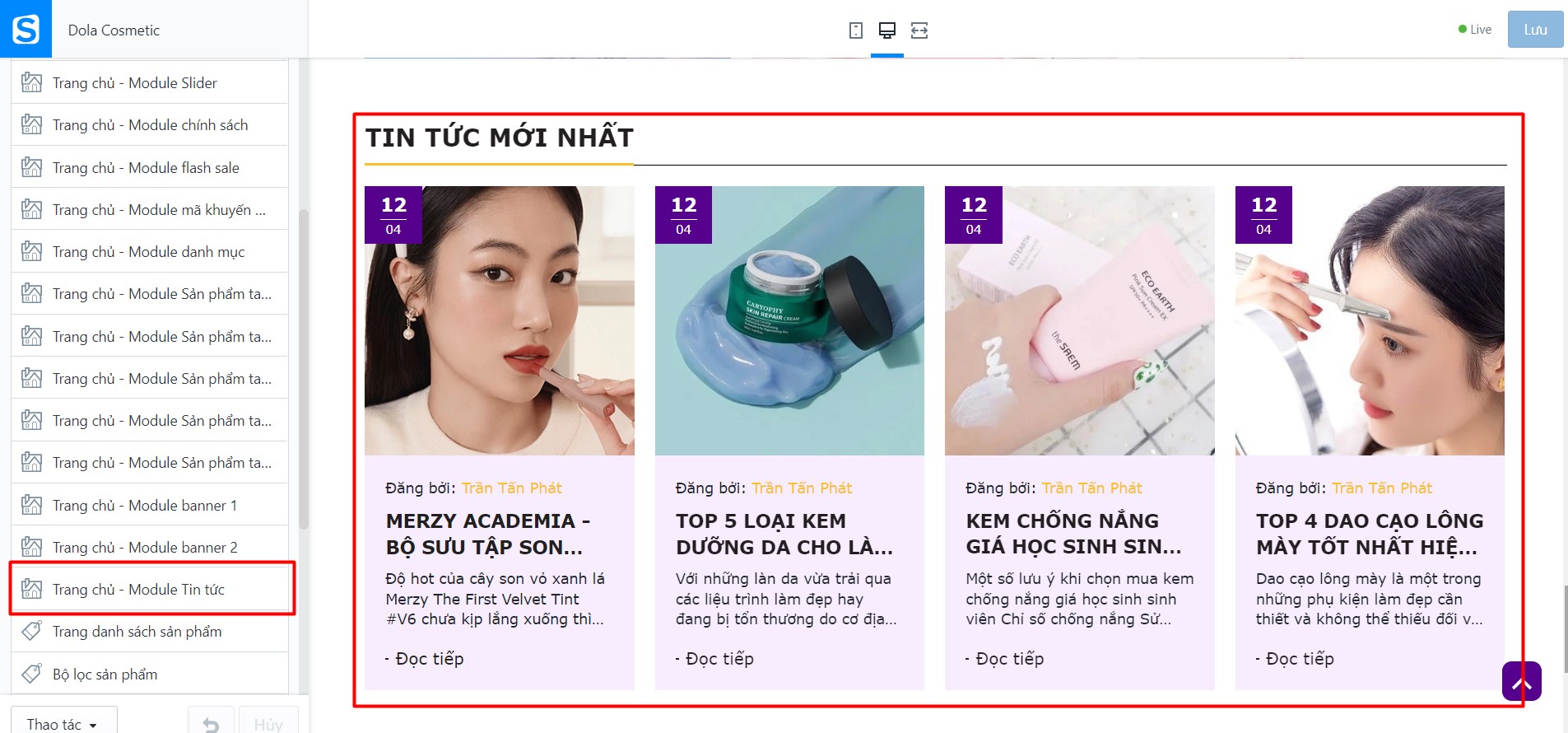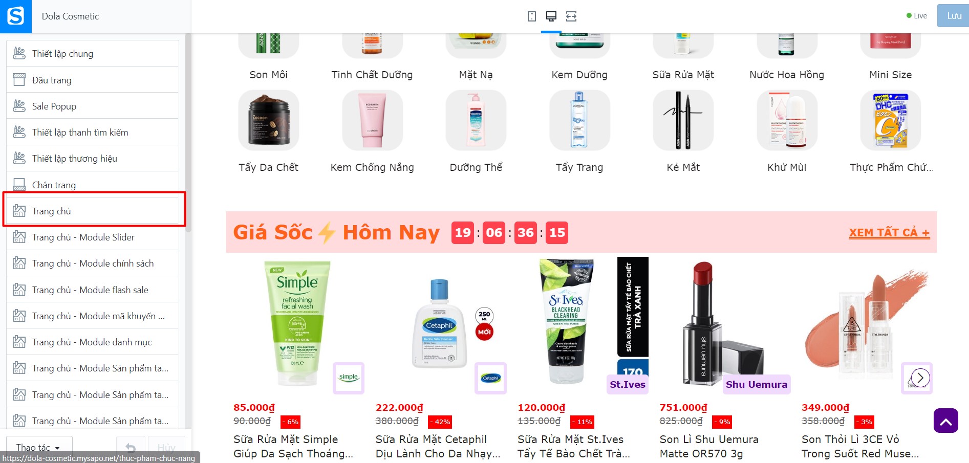 Để chọn lựa và sắp xếp các module trang chủ, bạn cần tìm đến thiết lập TRANG CHỦ: