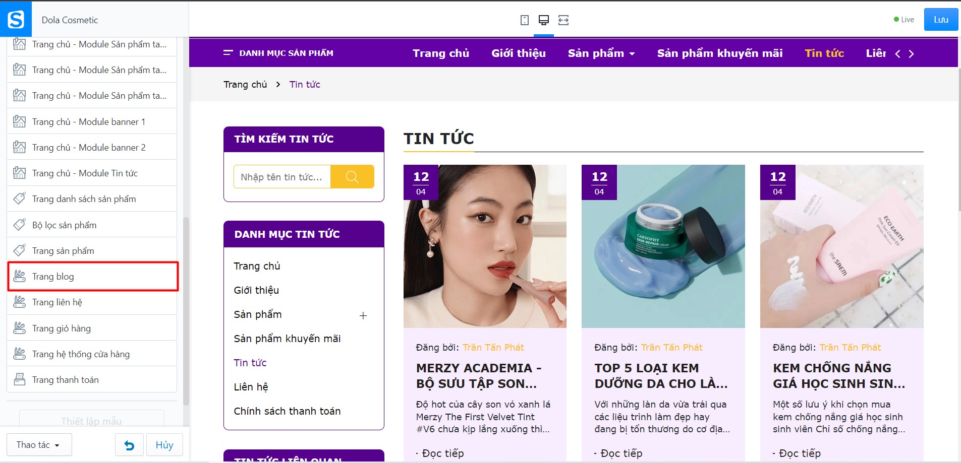 Để thiết lập trang blog, bạn cần tìm đến TRANG BLOG: