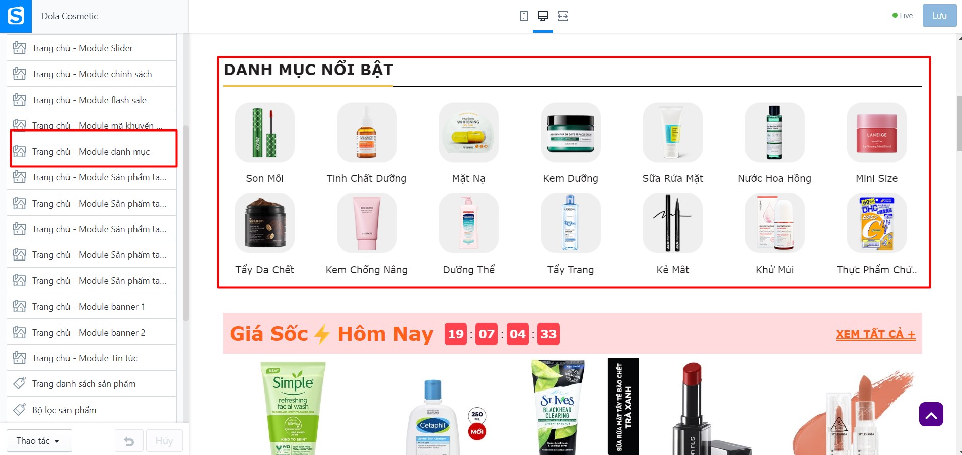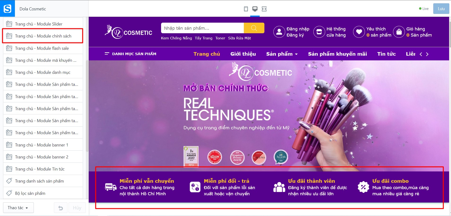 Trên trang chủ, chúng tôi chung cấp 9 module cho phép bạn có thể lựa chọn và sắp xếp vị trí của chúng trên trang chủ