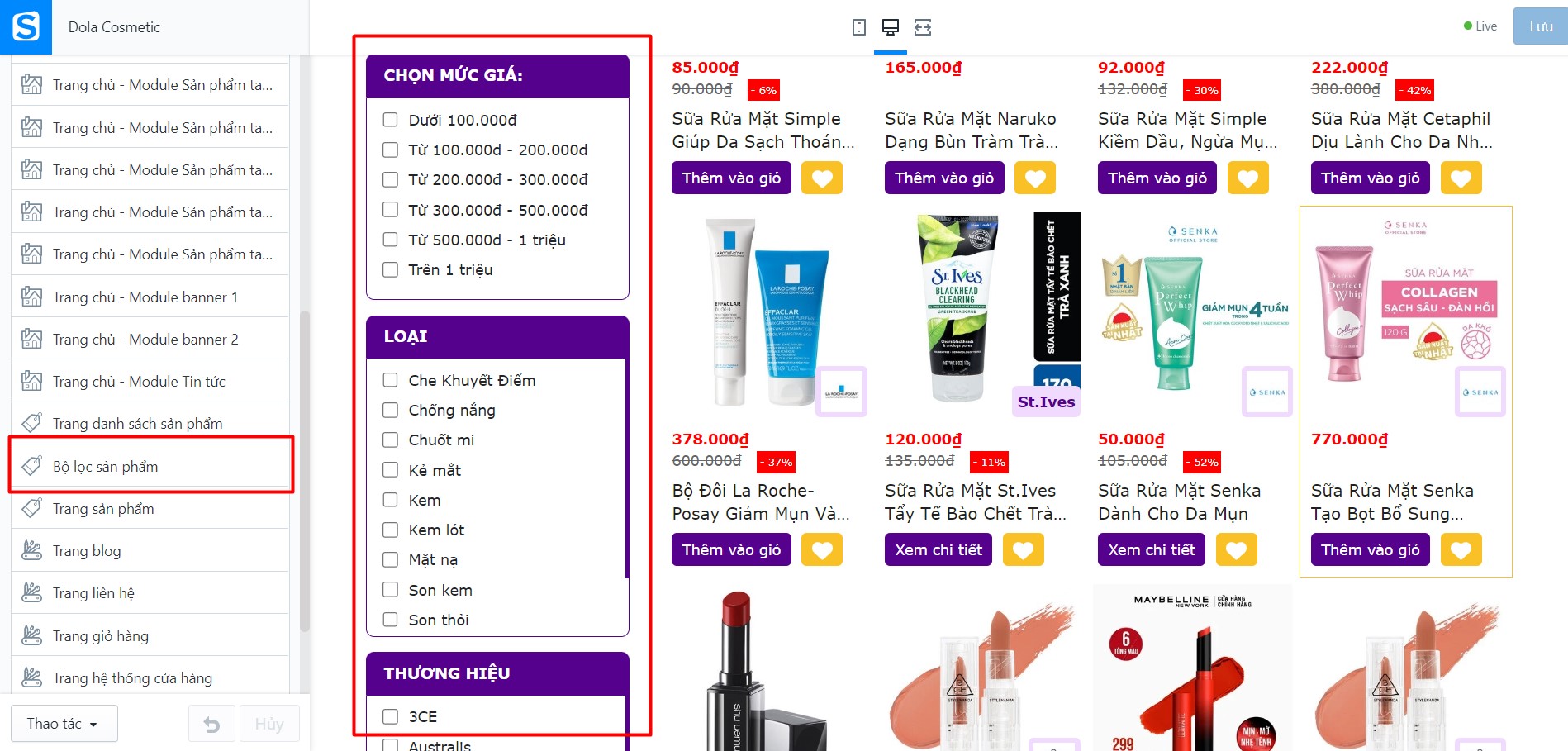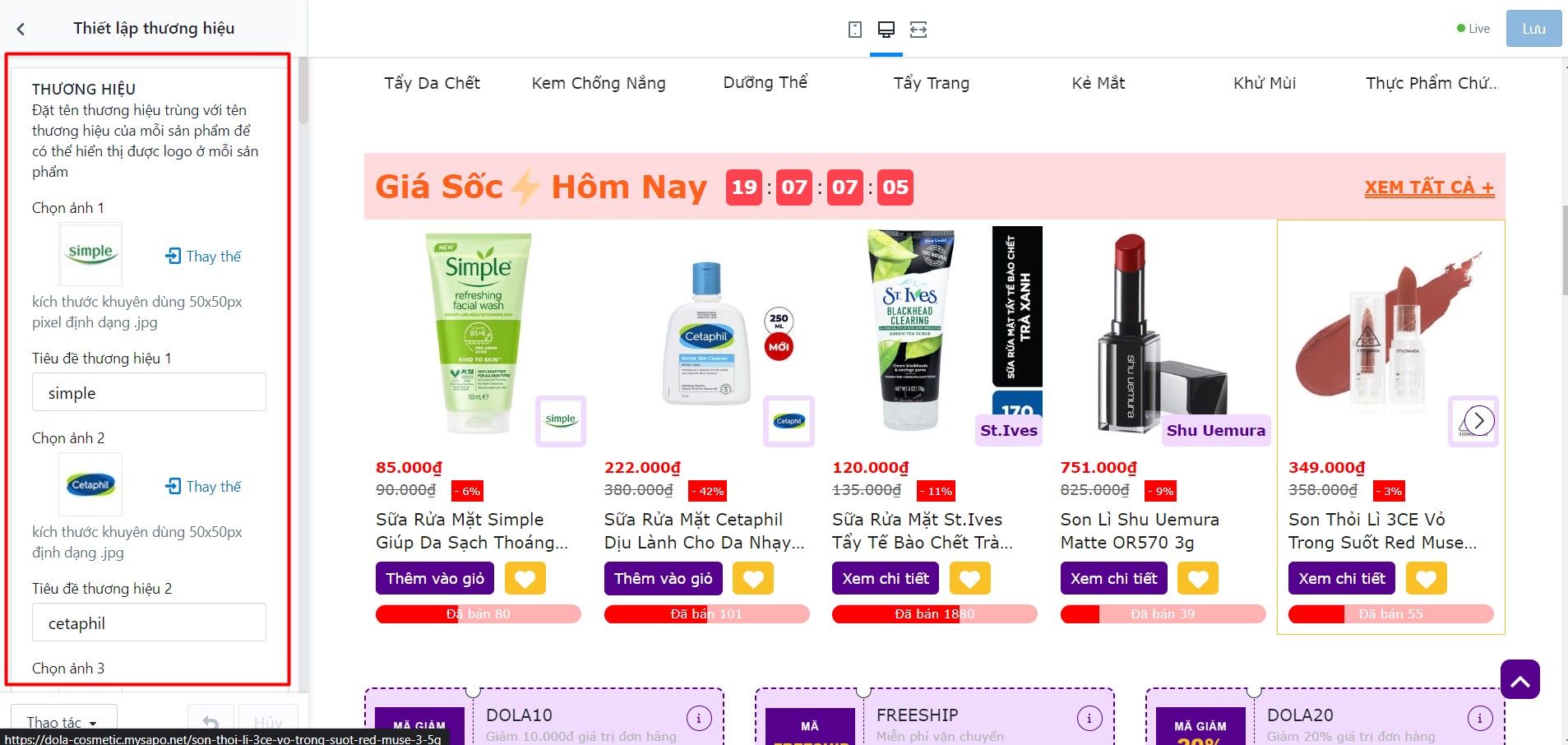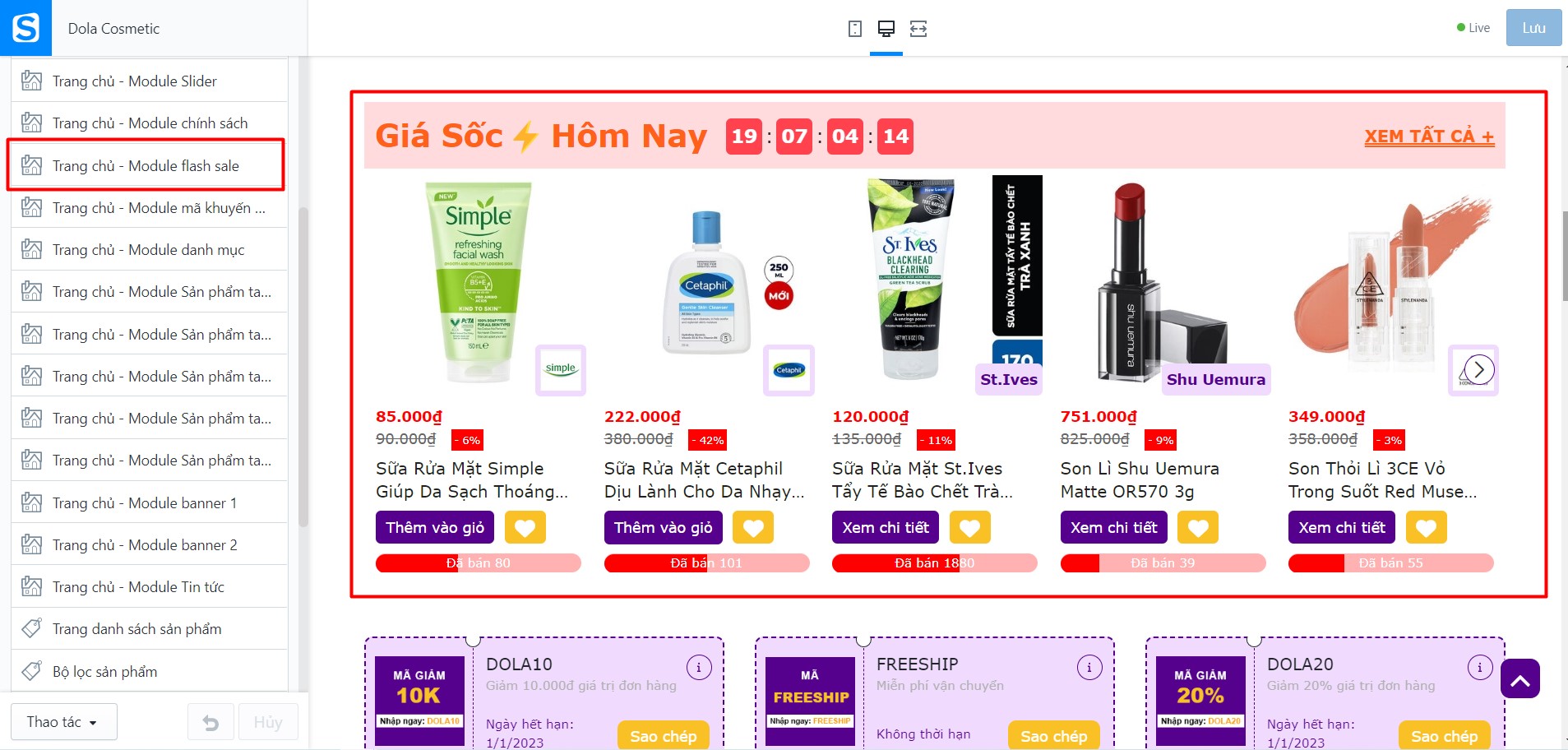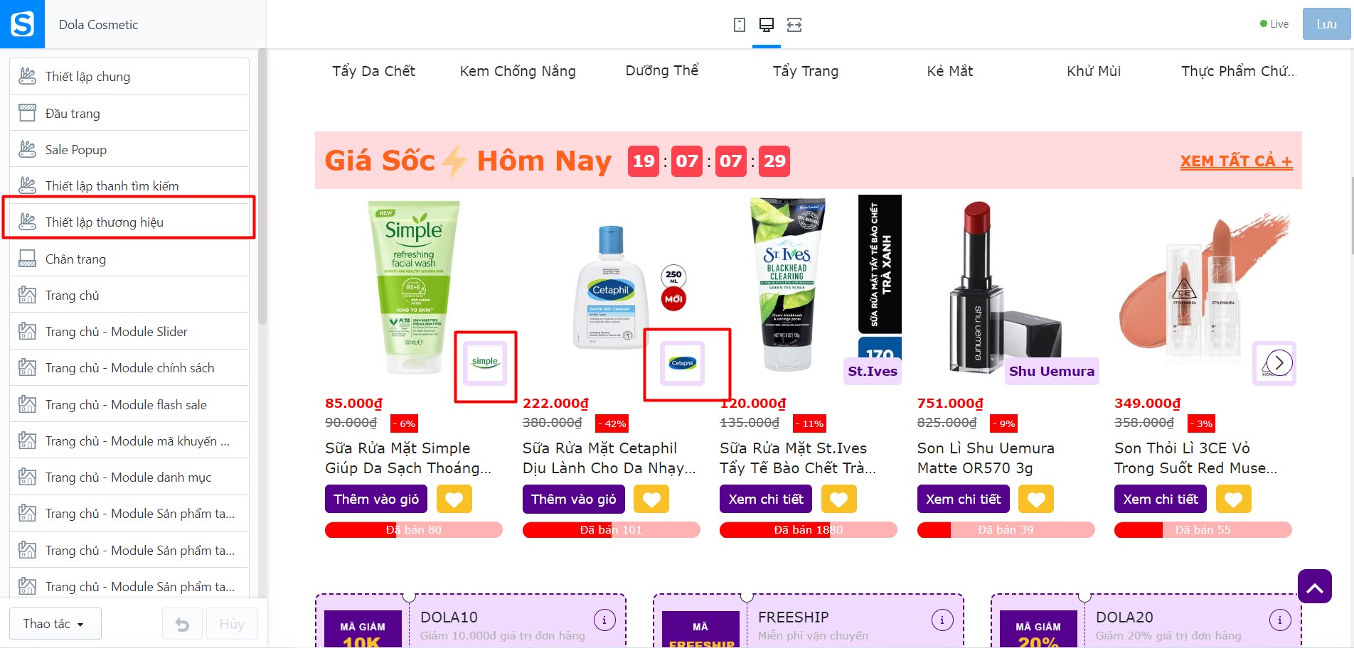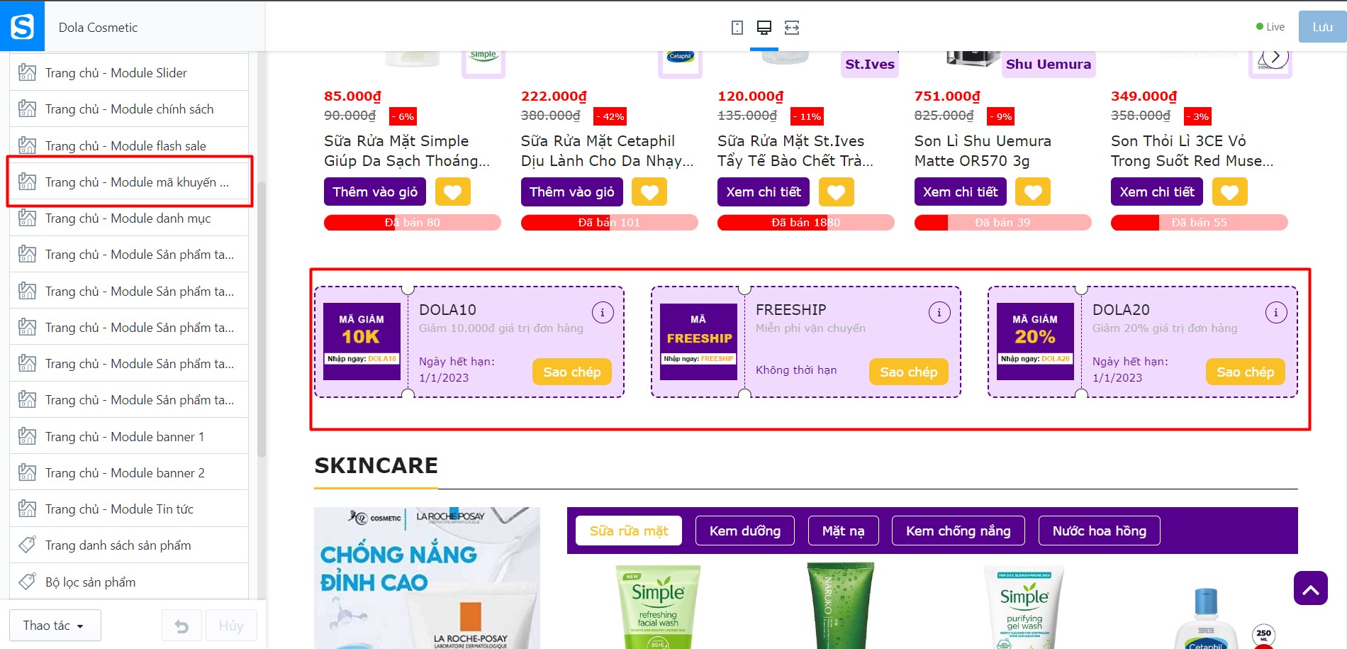 Dola Cosmetic được thiết kế dành riêng cho cửa hàng kinh doanh về mỹ phẩm, thực phẩm chức năng, và có thể kinh doanh nhiều loại mặc hàng tương tự