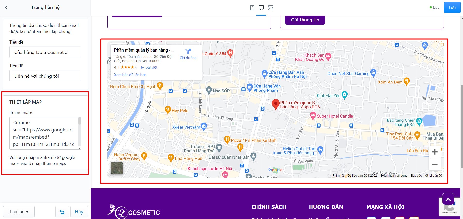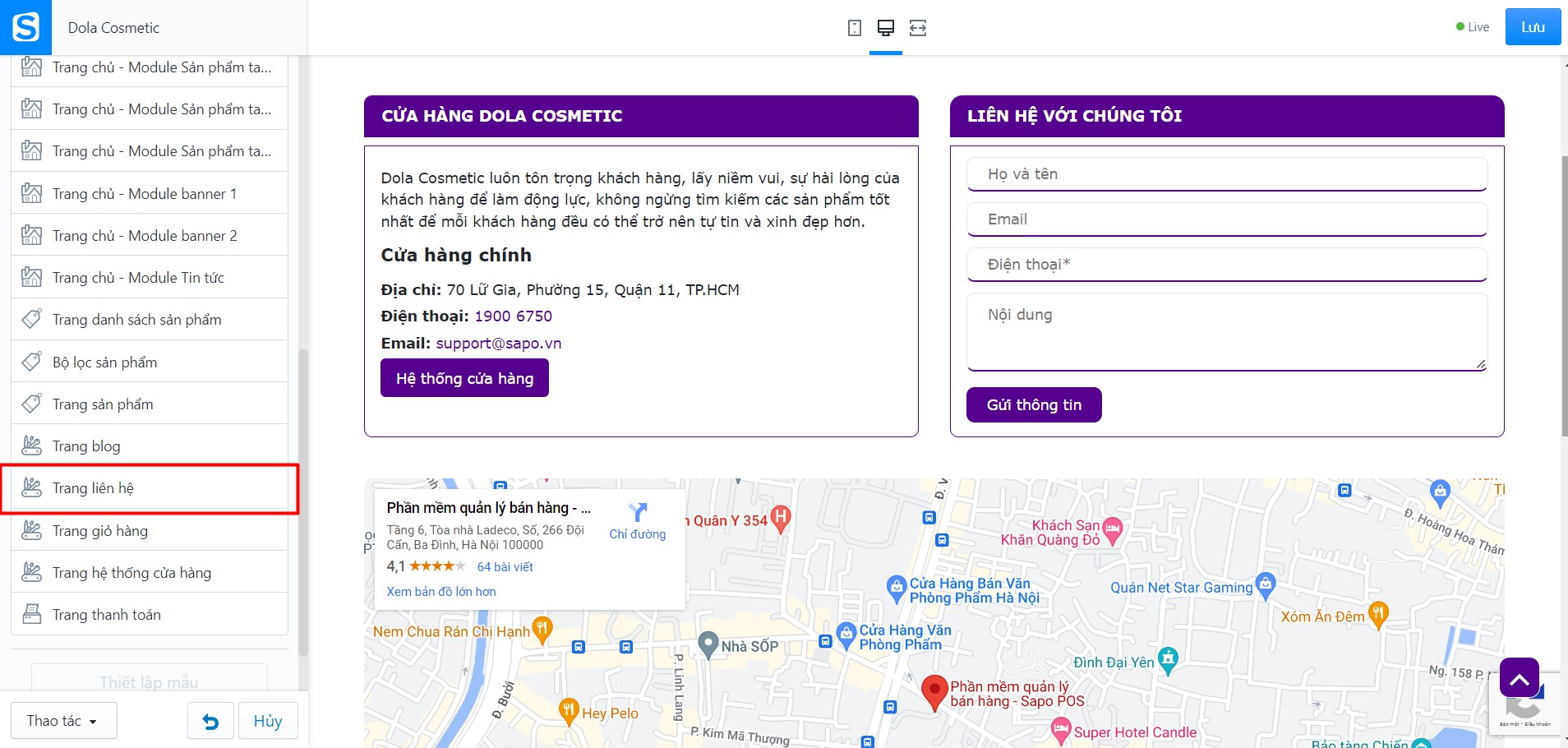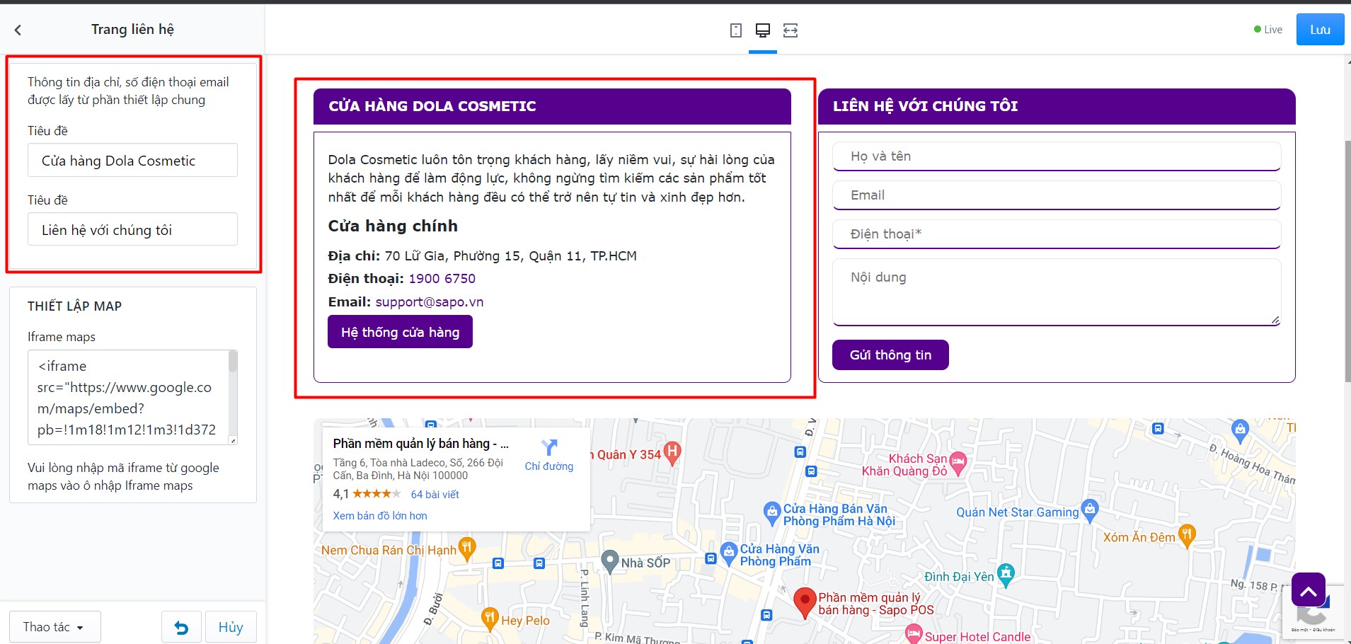 Tại đây bạn có thể thay đổi Bản đồ cũng như các thông tin liên hệ: