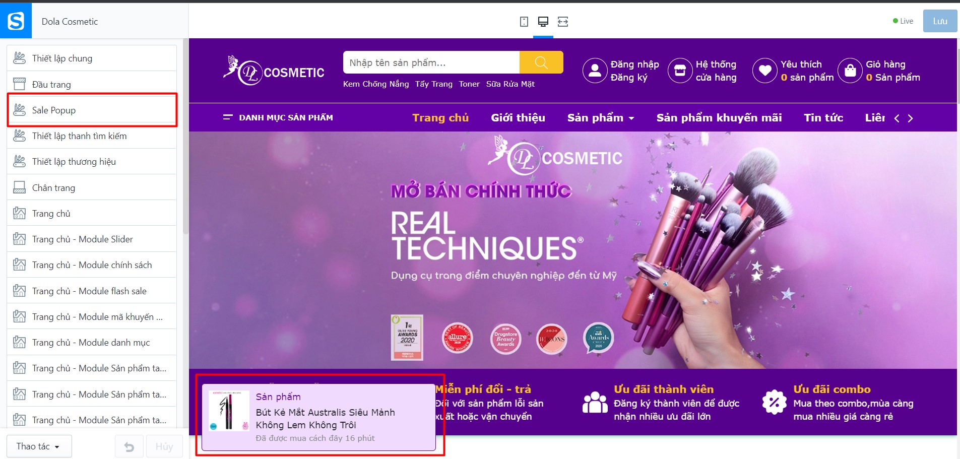 Để thiết lập sale popup, bạn cần tìm đến Sale popup:
