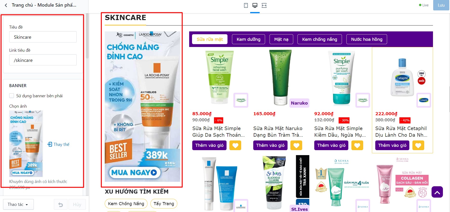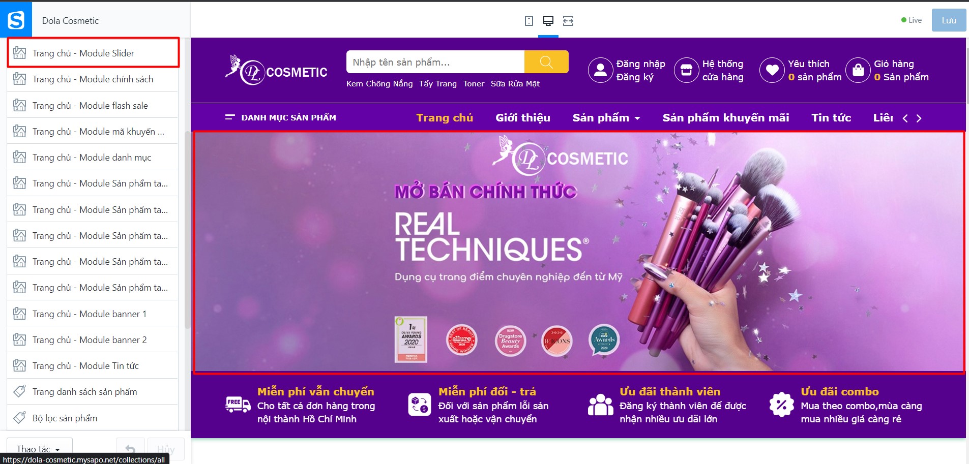 Tại đây bạn thiết lập các ảnh slider, liên kết ảnh,...: