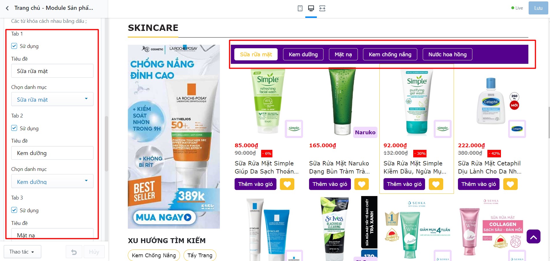 Chúng tôi cung cấp đến 5 module dạng tab cho bạn sử dụng thoải mái: