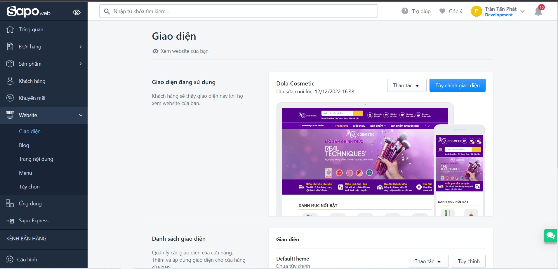 Sau khi cài đặt theme mới lên cửa hàng, bạn bấm vào TÙY CHỈNH GIAO DIỆN để tùy chỉnh theme: