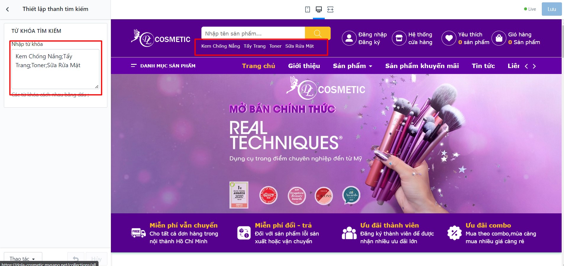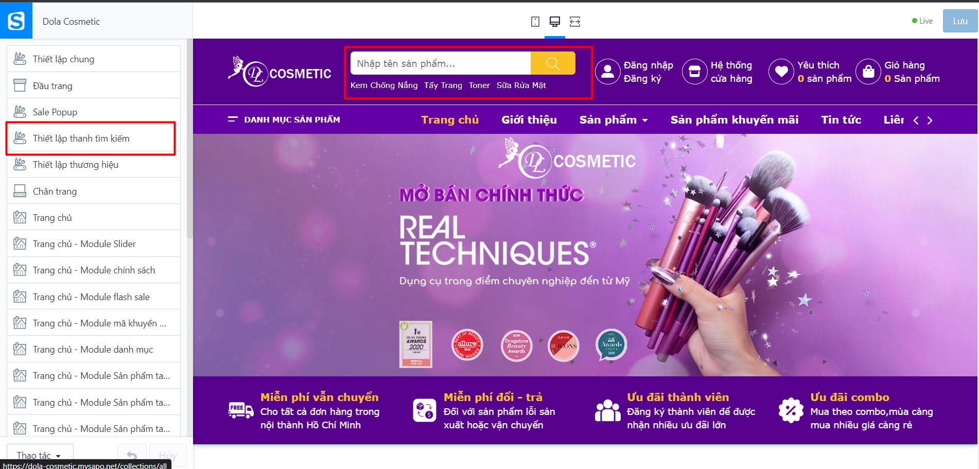 Để thiết lập thanh tìm kiếm, bạn cần tìm đến thiết lập thanh tìm kiếm: