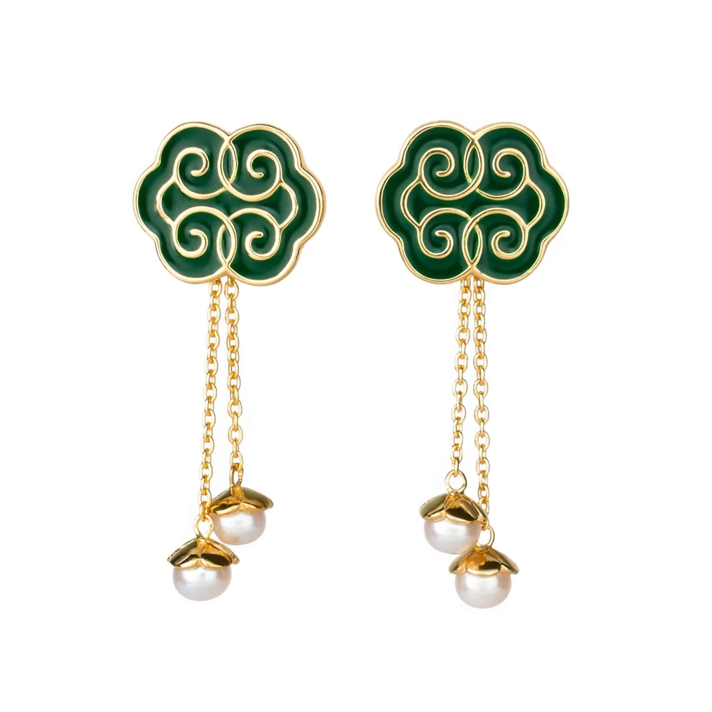 Bộ sưu tập trang sức Như Ý mạ vàng 18kt được thiết kế với hai mẫu hoa văn Như Ý ghép lại với nhau tạo thành một đám mây cân đối, kết hợp với những viên ngọc trai nước ngọt tròn trịa. Sự kết hợp này tạo nên một thiết kế biểu trưng cho niềm hạnh phúc trọn vẹn, thuần khiết và đáng trân quý