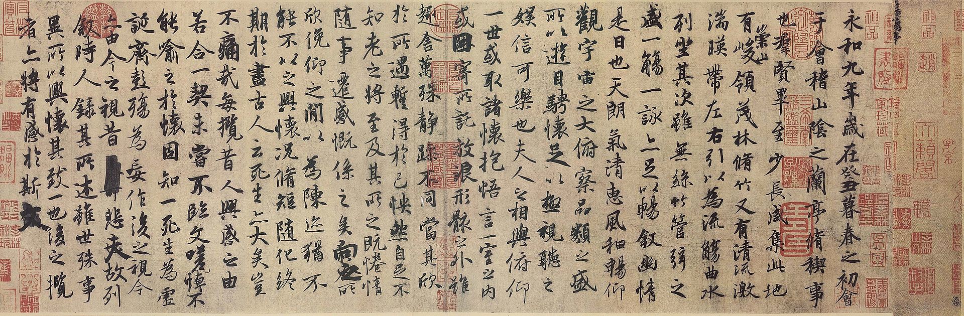 Vào một dịp tết Hàn Thực, trời cao khí thanh của mùa xuân năm 353 sau Công Nguyên, 42 vị danh nhân thi sĩ có phẩm cách và chí khí cao thượng, đã hội ngộ tương phùng, cùng thưởng ngoạn non xanh nước biếc hoa lệ, suy ngẫm về sự hùng vĩ bất tận của vũ trụ, dâng trào niềm cảm khái về đời người đắng cay ngắn ngủi, sinh tử vô thường trong cuộc thưởng rượu đối ẩm làm thơ.